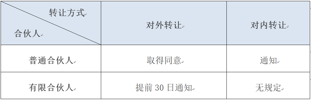 需注意的是,“对外转让须同意,对内转让须通知”是对普通合伙人转让合伙份额的规定,有限合伙人转让合伙份额则存在一定差别,具体见下表: